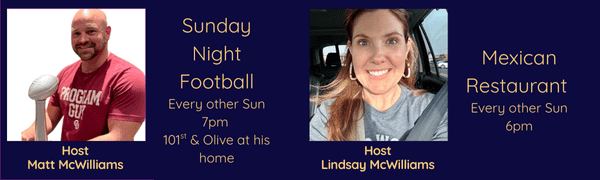Join Brett for dinner out at local restaurants. Some weeks have limited spots, so sign up early!